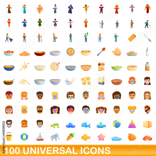 100, universal, icon, set, cartoon, collection, signs, symbol, object, vector, illustration, scarecrow, farmer, gardener, porridge, oatmeal, muesli, cereal, children, mask, make-up, toy, agriculture, character, vegetable, breakfast, food, spoon, berry, plate, ear, pack, milk, bag, tasty, healthy, oat, bowl, face, paint, birthday, festival, party, animal, smile, cube, pyramid, duck, boat