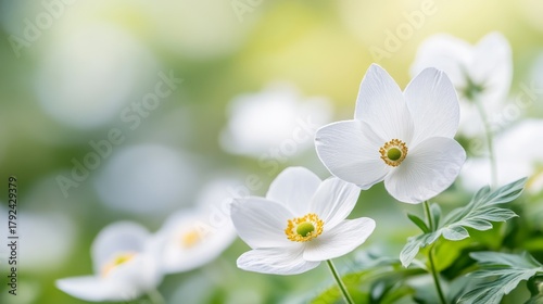101.White Anemone Flower and Butterfly – Nature Macro with Blue Sky and Bokeh