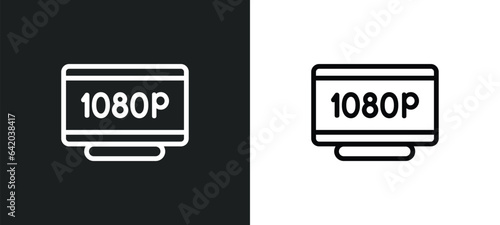 1080p hd tv icon isolated in white and black colors. 1080p hd tv outline vector icon from cinema collection for web, mobile apps and ui.