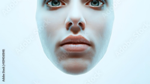 11. A front view of a human face with a focus on the eyes and mouth structure, on a white background