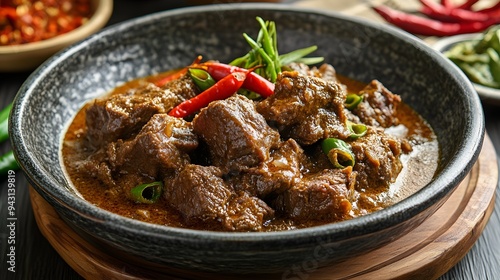 115. A dish of Indonesian rendang (spicy beef stew)