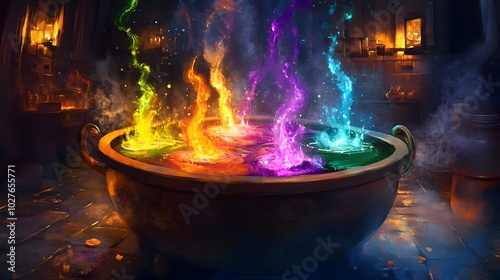12. A cauldron bubbling with colorful potions