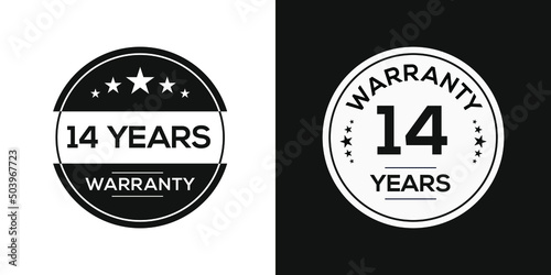 14 years warranty seal stamp, vector label.
