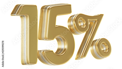 15 Percent Off Sale Sign Golden 3D Number Discount