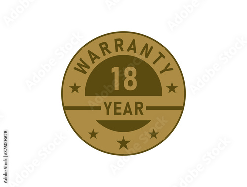 18 years warranty golden badges isolated on white background. Warranty label