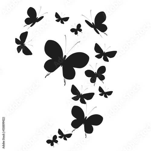 butterfly, isolated, fly, natural, white, spring, festive, celebration, decor, black, macro, decoration, wing, realistic, collection, design, object, insect, set, invitation, background, silhouette, animal, present