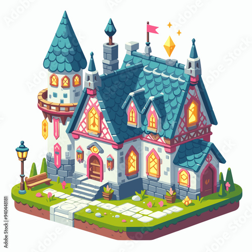 illustration, castle, building, architecture, design, vector, house, cartoon, fantasy, tower, background, old, home, landscape, magical, flat, window, palace, tale, roof, fairy, city, art, fairy tale, fort, fortress, town, exterior, element, holiday, sky, graphic, drawing, tree, decoration, kingdom, stronghold, construction, blue, mediaeval, colourful, village, banner, door, cute, grass, fairy tale, white, church