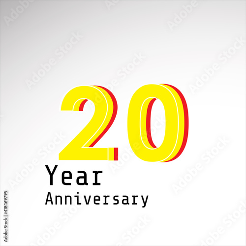 20 Years Anniversary Celebration Yellow Color Vector Template Design Illustration
