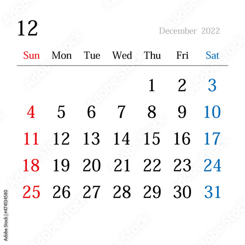calendar, 2022, december, schedule, table, moon, plan, planning, japan, holiday, template, vector