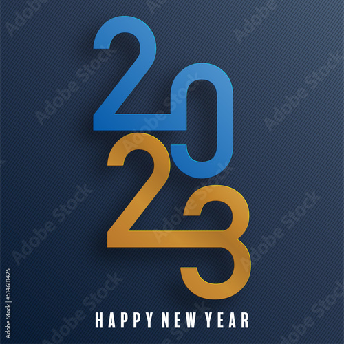 2023 Happy new year design for greeting cards or for branding, banner, cover, card Happy new year 2023 with paper cut art and craft style on paper color background.