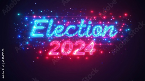 election, 2024, text, us, concept, poster, banner, neon, card, digital, vote, vibrant, light, colourful, patriotic, campaign, american, democracy, us, political, red, white, blue, abstract, background, futuristic, technology, america, glowing, modern, us, display