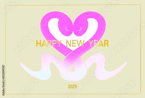pink, 2025, snake, heart, snake, snake, snake, sweet, character, handwriting, design, postcard, new year, happy new year, text, copy space, happy new year, sum, modern