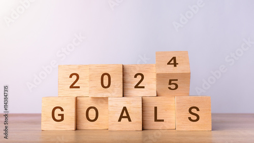2025 goals concept. Wooden blocks changing from 2024 to 2025. Business growth, goals, planning, Happy New Year