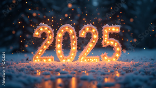 2025, new year, snow, winter, holiday, christmas, celebration, festive, light, number, happy new year, decoration, season, background, greeting, card, event, party, cold, night, sparkle, magic, future, hope, resolution, year, jan, december, frost, illuminated, glowing, bright, beautiful, nature, tree, forest, winter landscape, snowy, glacé, ice