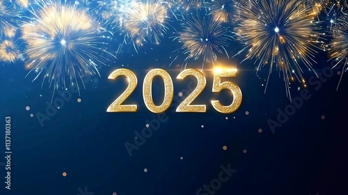 2025, new year, fireworks, eve, number, night, gold, sparker, celebration, card, blue, explosion, light, happy, sky, party, bright, event, holiday, abstract, yellow, sparkle, text, background, festival, midnight, fireworks, display, year, greeting, celebrate, new