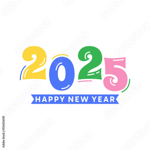 2025 typography logo design vector illustration. Happy new year 2025 logo design. Vector illustration design perfect for new year greeting, celebration, banner and the like