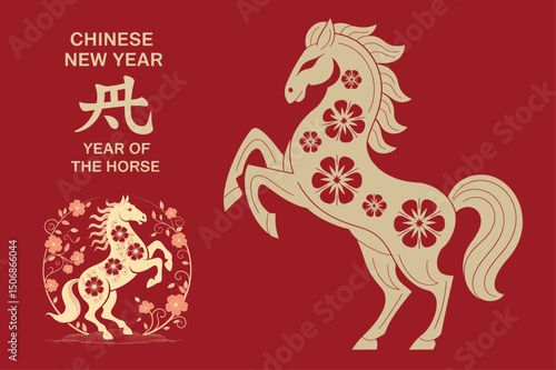 lunar, festival, celebration, horse, zodiac, 2026, red, gold, floral, pattern, spring, lucky, prosperity, oriental, festive, traditional, happiness, wealth, chinese, asia, greeting, vector, silhouette, symbol, blossom, animal, culture, artistic, calligraphy, harmony, joyful, elegant, ornate, graphic, year, fortune, intricate, auspicious, new year, equine, spirited, powerful, dynamic, iconic, vibrant