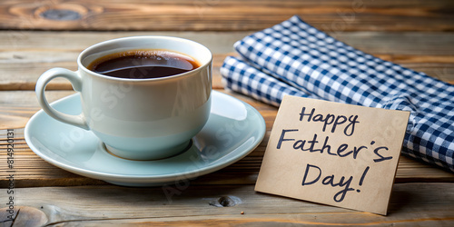 2:1. Father's Day Celebration: Happy Note Beside Coffee Cup. Perfect for: Father's Day Events, Coffee Shop Specials, Family Gatherings, Social Media Posts, Greeting Cards, Event Invitations.