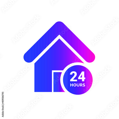 24 hours service icon. 24 hours open, home, dedicated service icon.