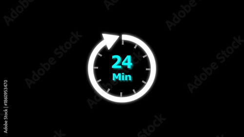 24 Min clock icon illustration. 24 minute illustration on black background and creating a stunning 4k illustration.