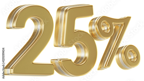 25 Percent Off Sale Sign Golden 3D Number Discount