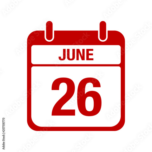 calendar, june, 26, red, icon, white, illustration, symbol, signs, month, vector, event, design, reminder, background, organiser, business, graphic, object, element, paper, flat, year, page, date, isolated, art, decoration, concept, holiday, shape, day, silhouette, office, time, number, meeting, plan, quality, appointment, deadline, beautiful, long, colours, app, happy