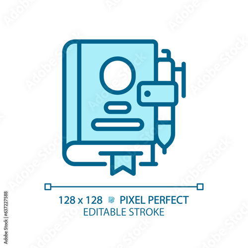 2D pixel perfect editable blue book icon, isolated vector, meditation thin line illustration.