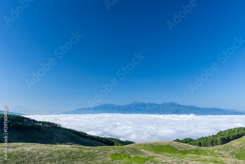 快晴の青空と雲海に浮かぶ南アルプスの山並み3