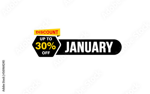 30 Percent JANUARY discount offer, clearance, promotion banner layout with sticker style.