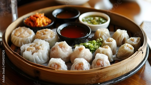 platter, assorted, dim, sum, dipping, sauce, side