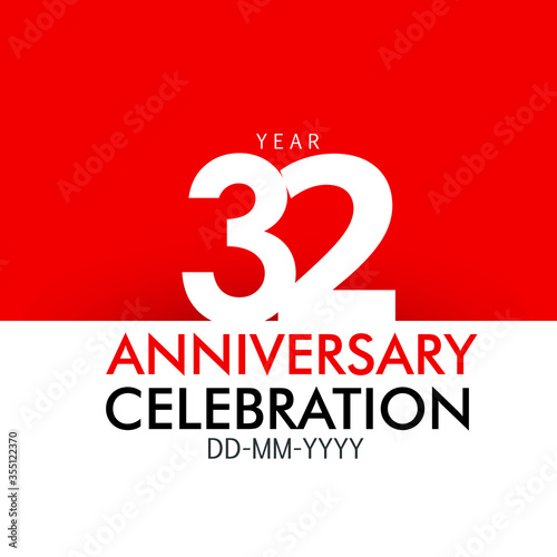 32 year Anniversary Concept Red Color and White for Banner, Poster, Greeting Card - Vector