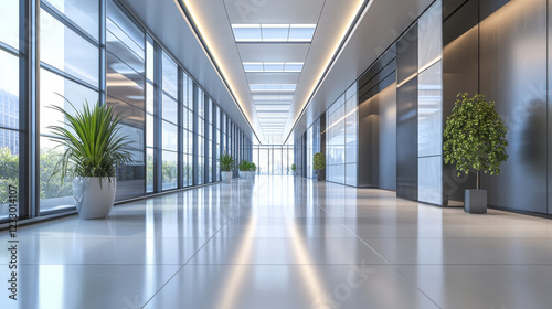 360 panorama view of futuristic black dark industrial style building hallway 3d render illustration