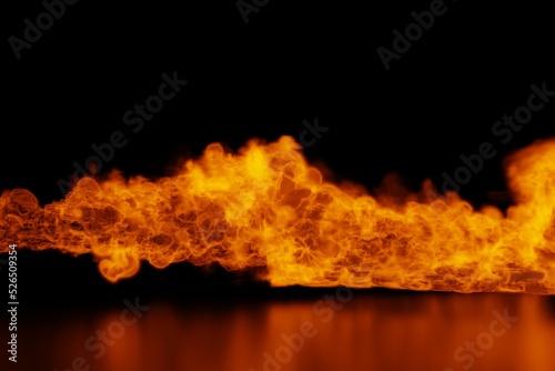 黒い背景とオレンジ色の炎の 3dレンダリング
