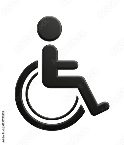 accessibility, disability, wheelchair, symbol, icon, silhouette, three-dimensional, rendered, black, dark, textured, isolated, cut-out, transparent, background, graphic, design, element, representation, human, person, mobility, aid, assistance, support, inclusion, equality, right, information, signage, public, space, building, transport, health care, medicals, warning, caution, alert, safety, awareness, advocacy, empowerment, modern, clean, minimalist, vector, illustration