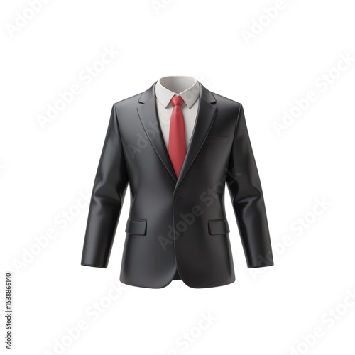 three-dimensional, black, suit, red, attaching, icon, formal, attire, business, professional, executive, fashion, clothing, menswear, corporate, office, workwear, render, white background, isolated, modern, minimalist, elegant, stylish, gentleman, success, leadership, meeting, event, conference, ceremony, interview, wealth, power, man, male, apparel, clothes rack, classic, custom, tailored, uniform, dress, code, representation, symbol, smart