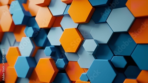 3D Blue and Orange Hexagon Background Pattern Design