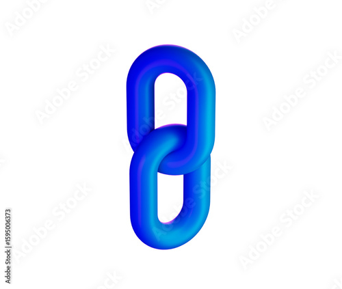 3D Blue chain link icon with a glossy finish, symbolizing connection and unity. 3d illustration