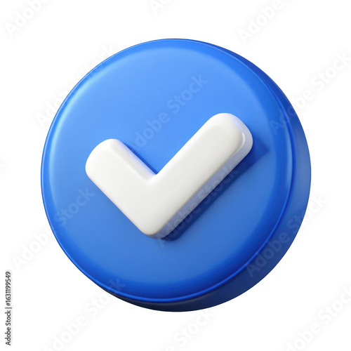 three-dimensional, checkmark, icon, check, mark, blue, white, symbol, graphic, design, digital, art, render, isolated, transparent, background, validation, success, approval, correct, yes, positive, confirmation, interface, element, buttons, round, circular, clean, minimalist, modern, realistic, high, resolution, stock, image, commercial, use, asset, visual, concept