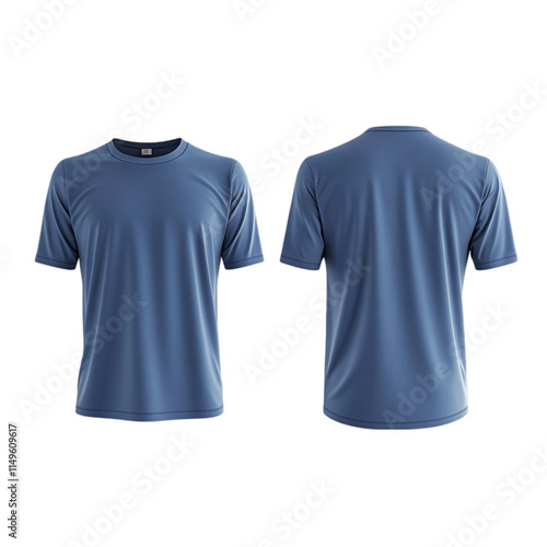 3D Blue T-shirt displayed from the Front and Back on a Transparent Background