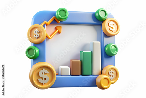 3D Border Frame with Dollar Signs and Financial Graphs concept - Ideal for Economic and Business Content - Isolated on White Background