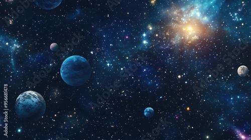 three-dimensional, cartoon, depiction, illustration, deep, expansive, space, filled, star, planet, moon, imaginative, science, fiction, realistic, alien, solar, system, universe, galaxy, cosmos, celestial, nebula, asteroid, exploration, distant, futuristic, fantasy, evacuated, colourful, vibrant, horizon, phenomena, travel, mysterious, sky, bright, aglow, aethereal, design, visual, artwork, creativity