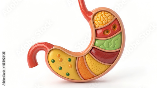 3D cartoon human stomach organ curved shape digestive system anatomy illustration