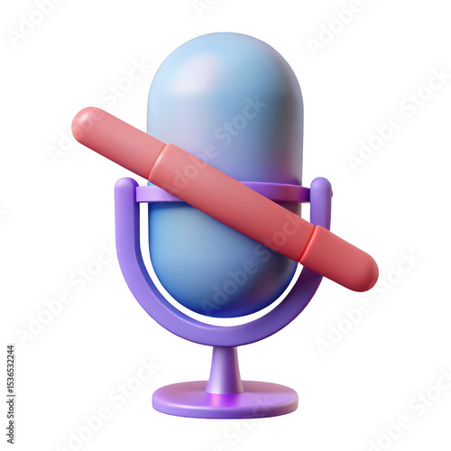 three-dimensional, microphone, mute, icon, cartoon, render, transparent, background, isolated, object, realistic, clean, design, pastel, colours, purple, pink, blue, model, stock, image, commercial, use, digital, asset, vector, graphic, element, app, website, illustration