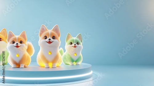 3D Cartoon Pets in Colorful Scenes, Colorful 3D Cartoon Pets on Glowing Stage