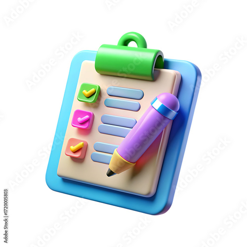 three-dimensional, rendering, clipboard, checklist, task, management, planning, list, icon, completed, pending, crayons, drawing, writing, organisation, efficiency, productivity, business, education, creativity, project, goal, progress, survey, form, document, datum, entry, symbol, graphic, design, visual, concept, digital, art, modern