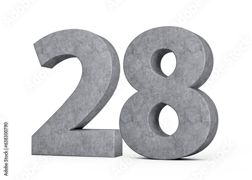 3d Concrete Number twenty eight 28 Digit Made Of Grey Concrete Stone On White Background 3d Illustration