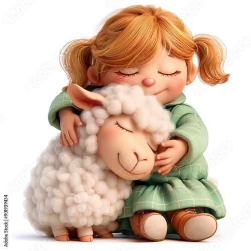 three-dimensional, white background, children, youth, playful, fun, nature, isolated, imaginative, happy, animal, cute, girl, farm animal, companionship, sheep