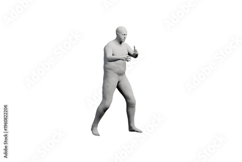 man, male, figure, body, posing, portrait, person, isolated, contemplation, thinking, expression, movement, lifestyle, confidence, strength, energy, dynamic, modern, abstract, form, shape, studio, white, health, walking, thoughtful, three-dimensional, render, model, digital, art, photorealistic, human, anatomy, mannequin, left, masculine, overweight, heavy, large, matte, flat, black, dark, background, lighting, clean, illustration
