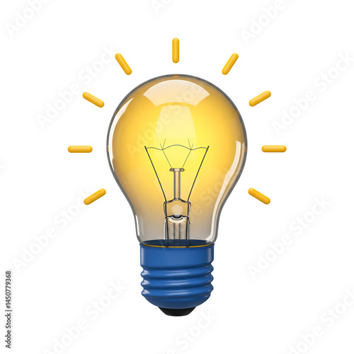 3D Glowing Yellow Light Bulb with Blue Base Symbolizing Creativity and Innovation