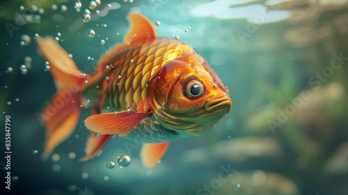 fish, underwater, cartoon, three-dimensional, goldfish, water, sea, aquarium, animal, gold, pet, orange, tropical, aquatic, nature, swimming, ocean, colours, swim, illustration, red, pet